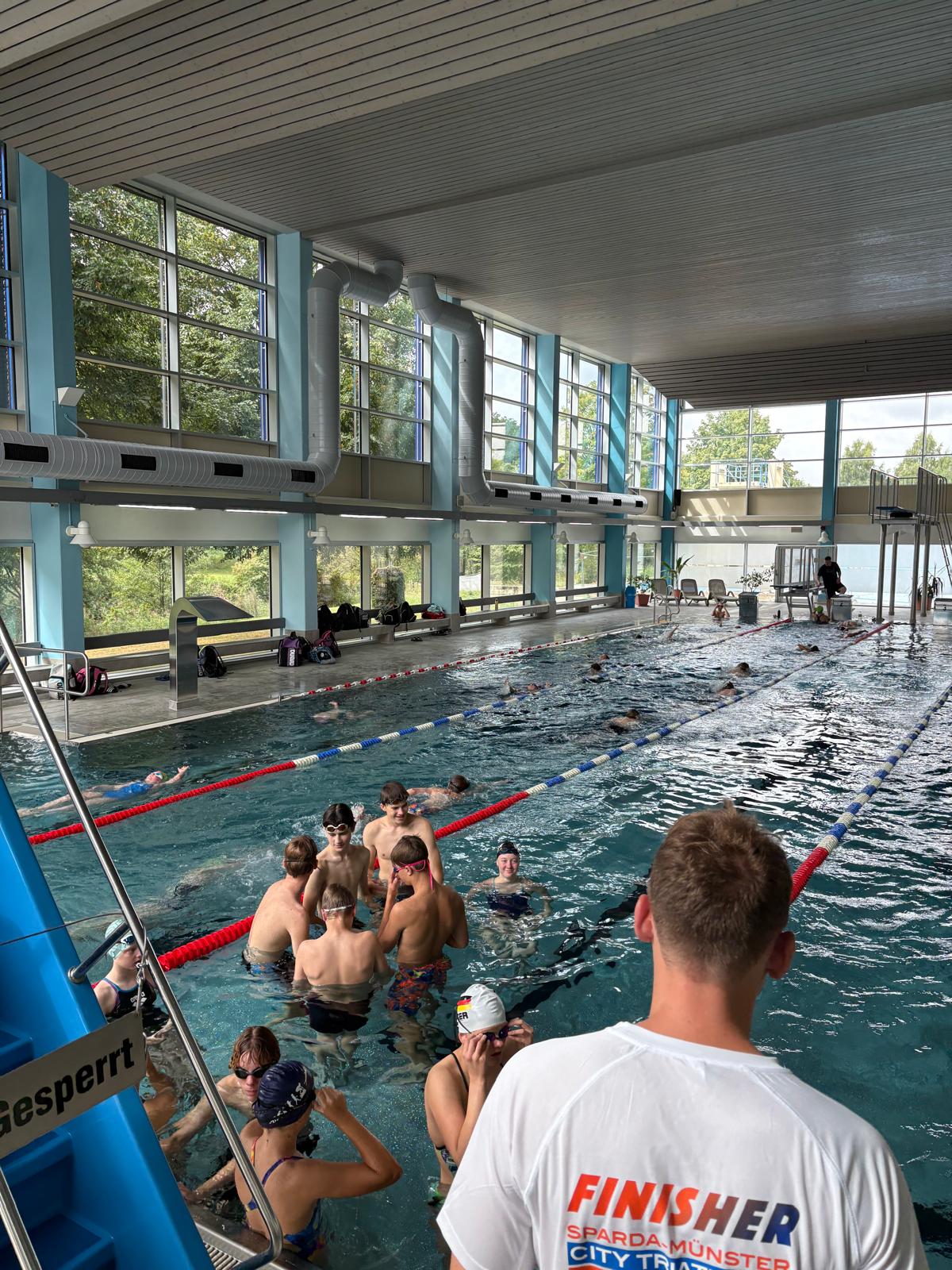 Kaum angekommen, neigt sich die Weltraummission schon fast dem Ende zu – heute stand bereits der vorletzte Tag unseres diesjährigen Astronautencamps an. Ein letztes Mal ging es für die Schwimmer/innen heute ins Hallenbad. Jedoch wurde diesmal zum Hallenbad gejoggt und der Shuttel zurück zur Basis genommen.